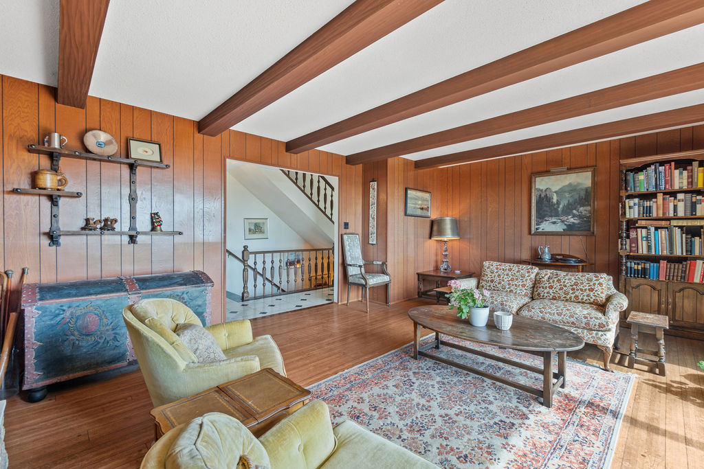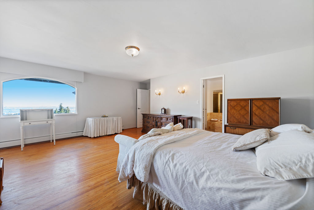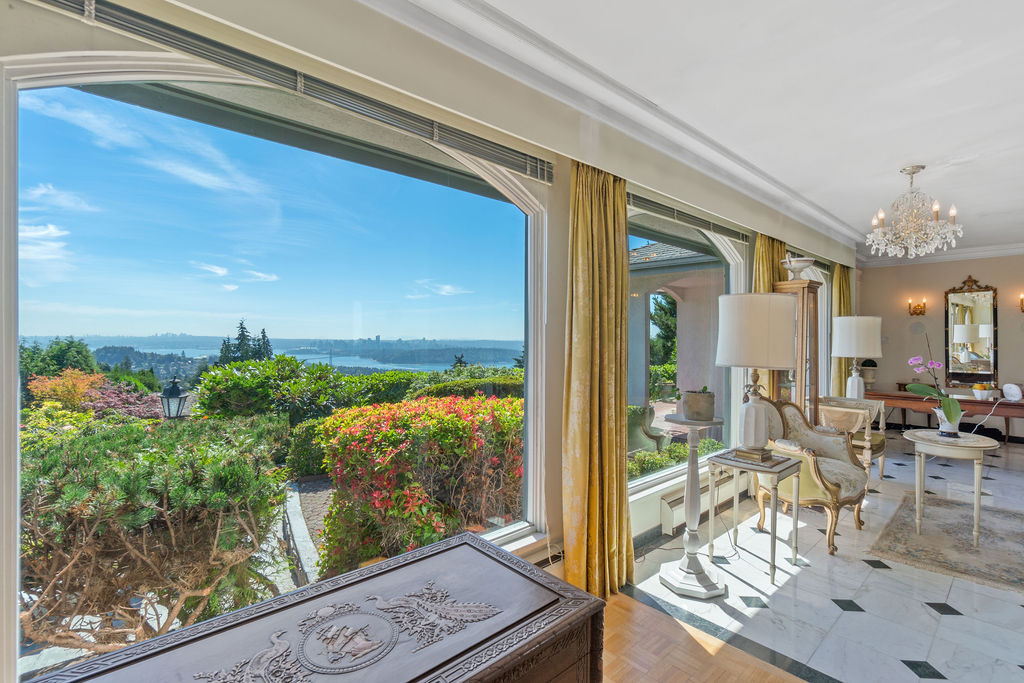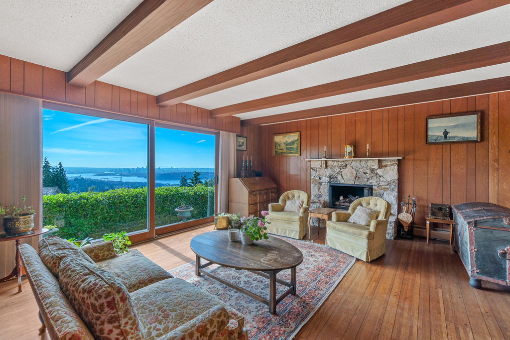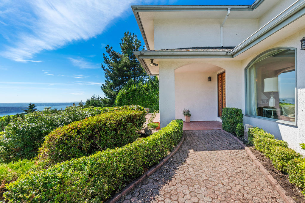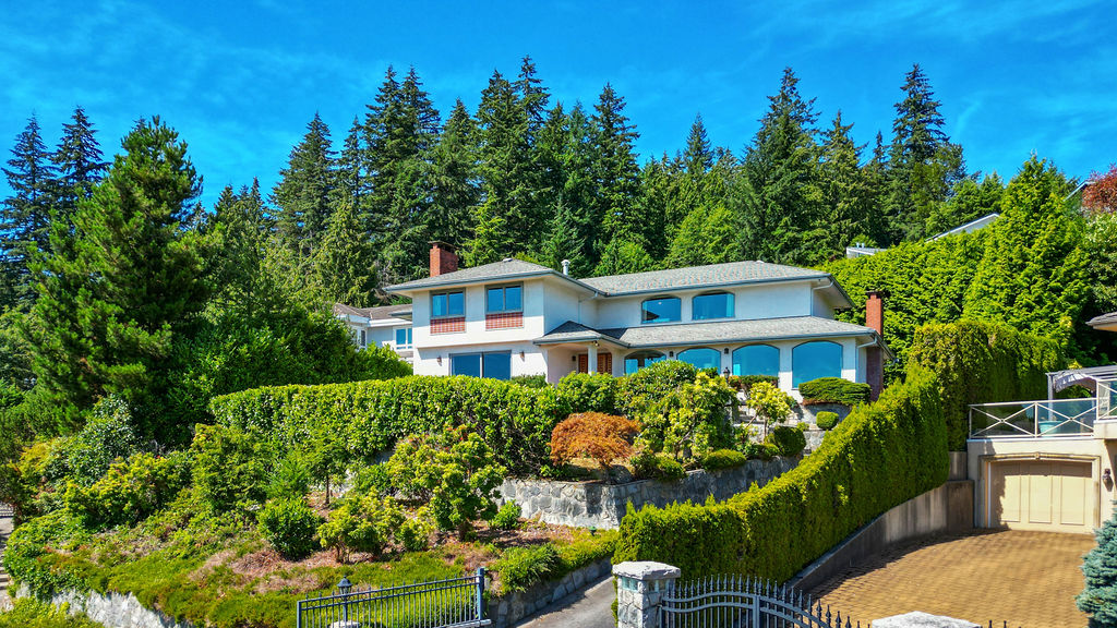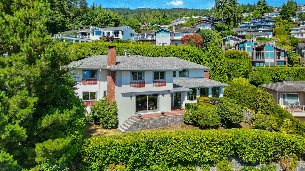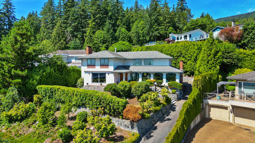 Desirable Chartwell location. Situated high on the hill with panoramic views of Water, City, Lions Gate Bridge & Mount Baker. This CHARMING Cape Cod home sits on a 13,950 sq ft lot, with a 3 car garage & large parking courtyard, well maintained with 7 bedrooms and 4 bathrooms. Main floor has living room, dining room with huge windows for sight-seeing and feature hardwood flooring throughout, spacious living, dining & family room with huge windows, large kitchen, plus ensuited bedroom on the main. Upstairs has 5 bedrooms in total, incl spacious master bedroom ensuited with walk in closet. Lower level offers a huge rec.rm, wet bar, game room. Walking distance to Chartwell and Sentinel schools and Hollyburn Country Club