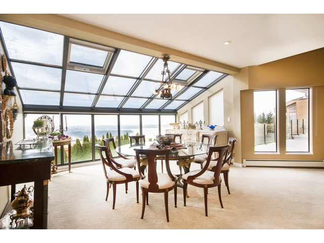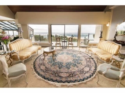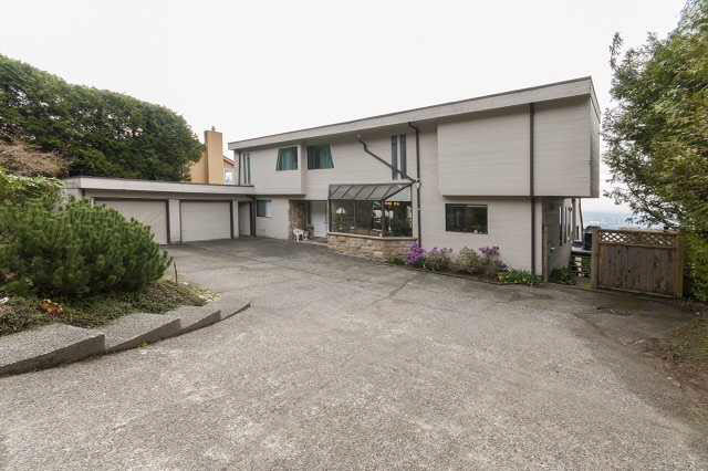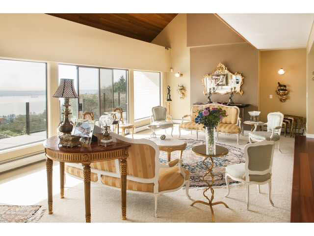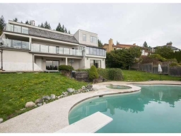 Stunning 180 Unobstructed Panorama! Sunrise to Sunset, Mt. Baker to Vancouver Island! 3 level spectacular contemporary residence enjoying views from all levels and all principal rooms. Fully self-contained suite below. Featuring elegant vau lted ceilings, sunken living room, highend kitchen appliances etc. In ground pool/hot tub adjacent. Extremely private, bright and sunny. Directly south facing with iron gated entry. Very Special Property!!