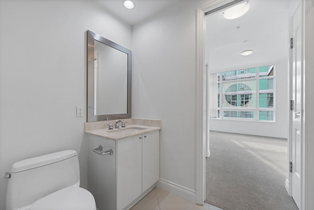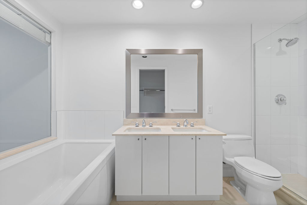 Bright South facing 2 Bedroom plus a Den. Never been lived in. The bedrms are located on opposite sides, and both have ensuites. The primary bedrm has a big walk-in closet, a spa like 5-piece ensuite and its own balcony. The spacious balcony off the living room offers 255 sq.ft. of sunny outdoor space. This home has new carpet in the bedrooms and a new SMEG fridge. The kitchen also features a Bosch dishwasher, oven and gas cook top. You will enjoy the carefree lifestyle of living steps to recreation, shopping, restaurants, Sea bus and the waterfront. Atrium has a 3,000 sq.ft amenity room for drop in or larger gatherings, featuring a full kitchen, games & lounge areas. Atrium owners also enjoy use of the fitness centre next door with its gym, whirlpool, indoor lap pool, steam room & sauna.