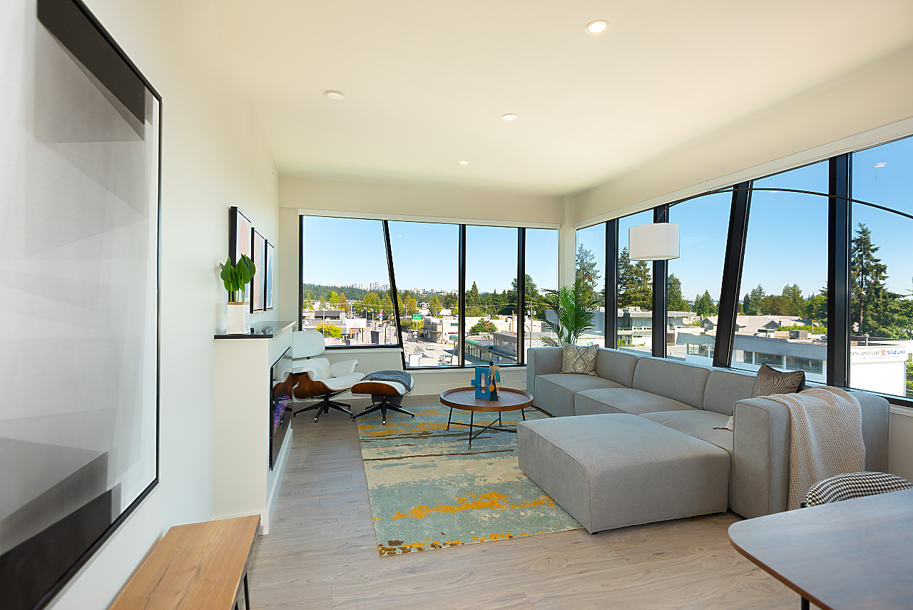 Brand new 3 bed & den, 2 bath PENTHOUSE w/ breathtaking views of Downtown Vancouver & Lions Gate Bridge! Nominated for a Design Excellence Award by the District of North Vancouver’s Advisory Design Panel. With a total of 1,420 sqft, open concept floor plan w/air conditioning, floor to ceiling windows, this unit has contemporary finishes, gourmet kitchen w/ stainless steel appliances & endless countertop space. Master bedroom with a walk-in closet & luxurious ensuite featuring a soaker tub, stand up shower & Juliet sinks. Centrally located & minutes away from Park Royal Shopping Mall, Downtown Vancouver and Ambleside Beach.