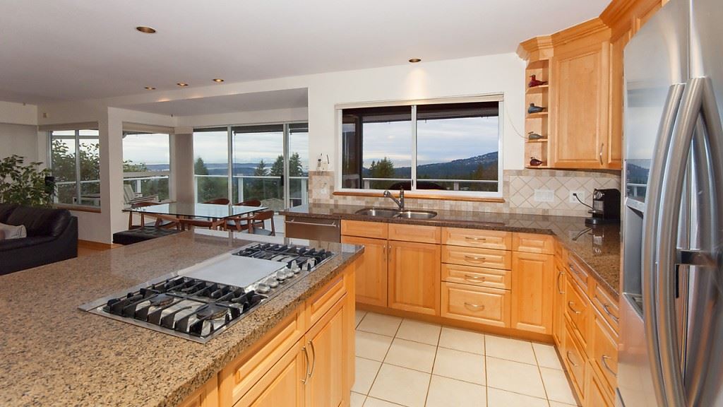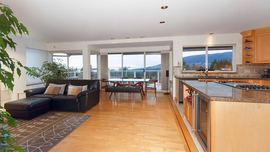 Stunning south west facing views to Downtown Vancouver, Lions Gate Bridge, Stanley Park and beyond from this immaculately kept 4 bedroom and den 3 level home on the private culdesac part of Starlight Way! A very modern concept throughout, offering vaulted ceilings, large entertainment sized living spaces and spacious outdoor areas to enhance the home's appeal. Features include hardwood floors, granite counters and stainless appliances in kitchen, double height ceilings on staircase, 3 large bedrooms on upper level plus 4th bedroom and rec room on lower floor. A perfect family home with great privacy!