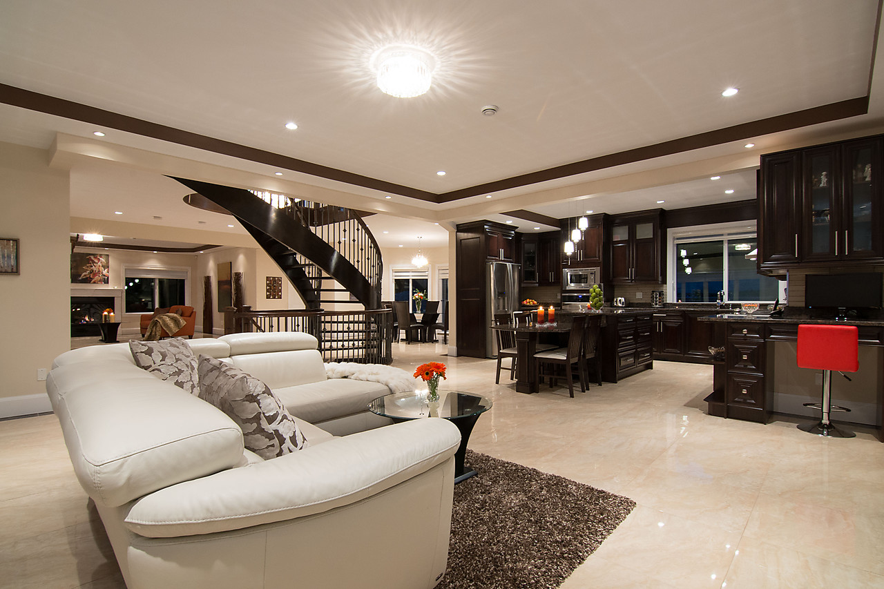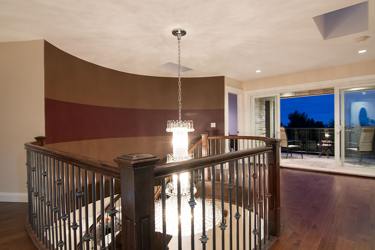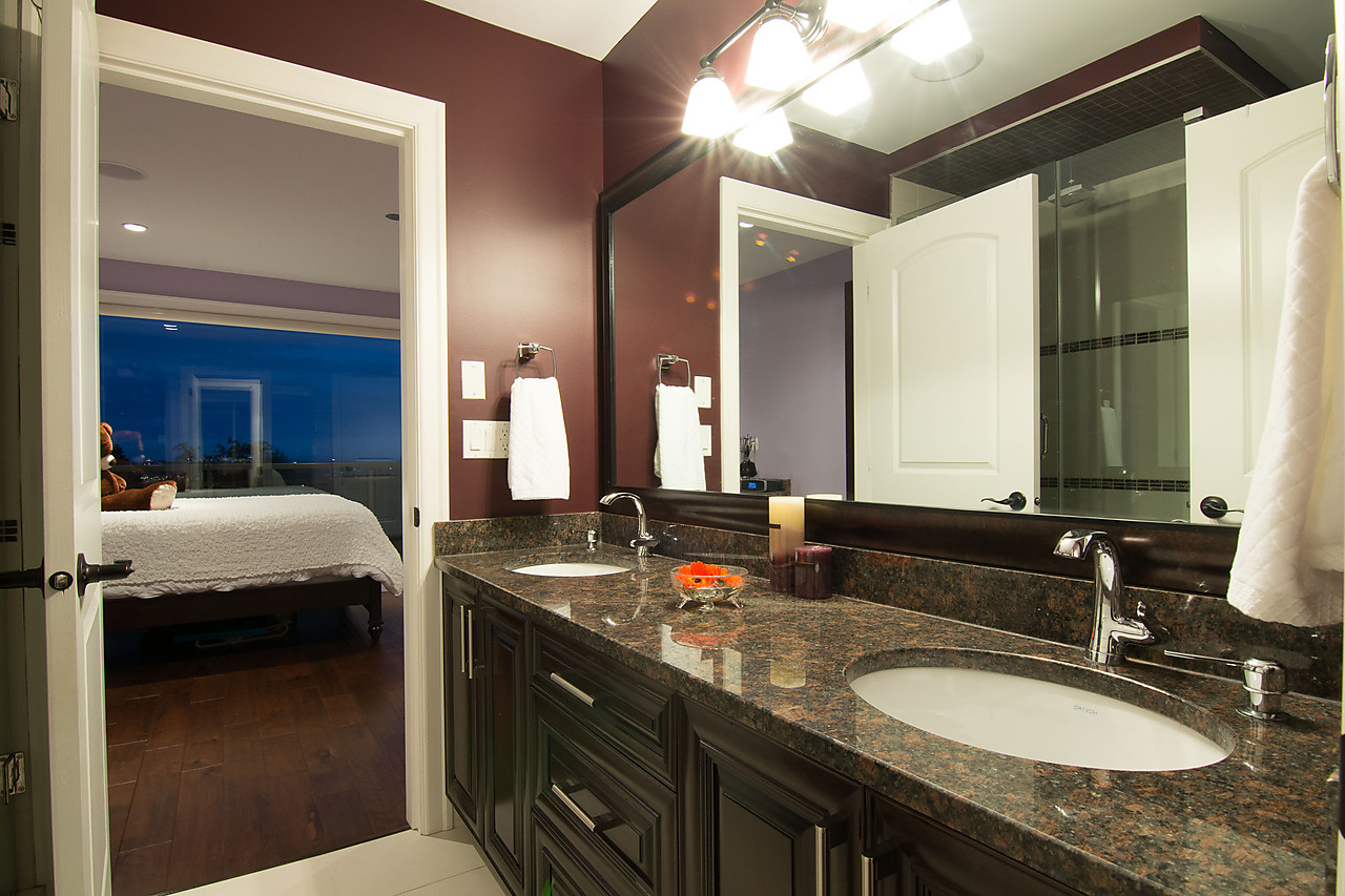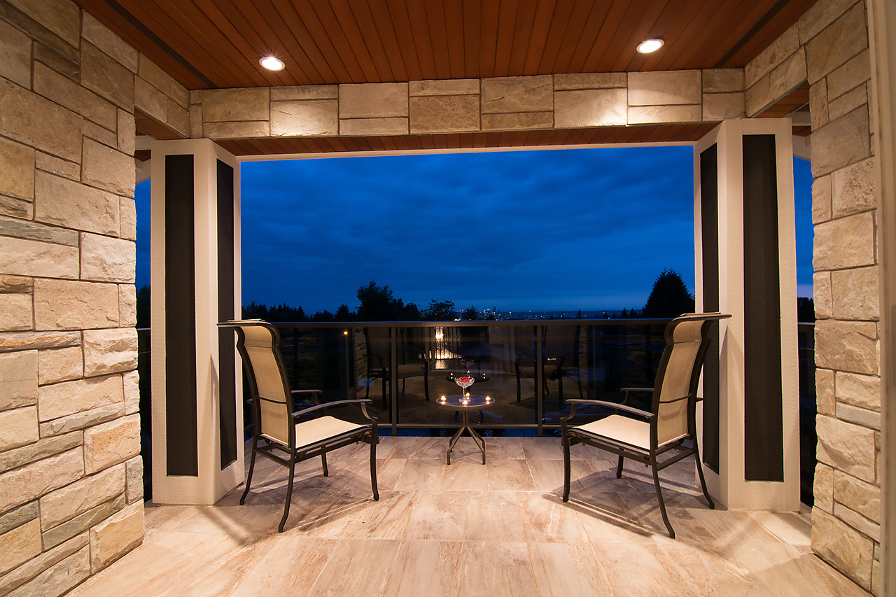 Stunning views of OCEAN and CITY from this custom built, 3 level home located on quiet street. Majestic mountain views from private back yard. Impressive foyer has spiral cast iron staircase engineered to encircle an Italian chandelier, welcoming you inside. Features: Turkish stone flooring, French doors to patio, hardwood floors in bedrooms, Viessmann radiant heat, steel beams to support open living design, tankless hot water, HRV system, surround sound, and built-in vacuum. Master suite w/walk-in closet, spa-like ensuite & views of downtown. Legal 2 bedroom suite down. Outdoors appreciate extensive patio, terraced gardens, U/G irrigation & outdoor lighting. Ample parking in the 2 car garage & driveway.