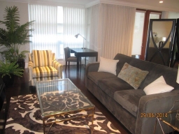 Custom finishes throughout this 1 bedroom corner suite. Balcondy faces SW.